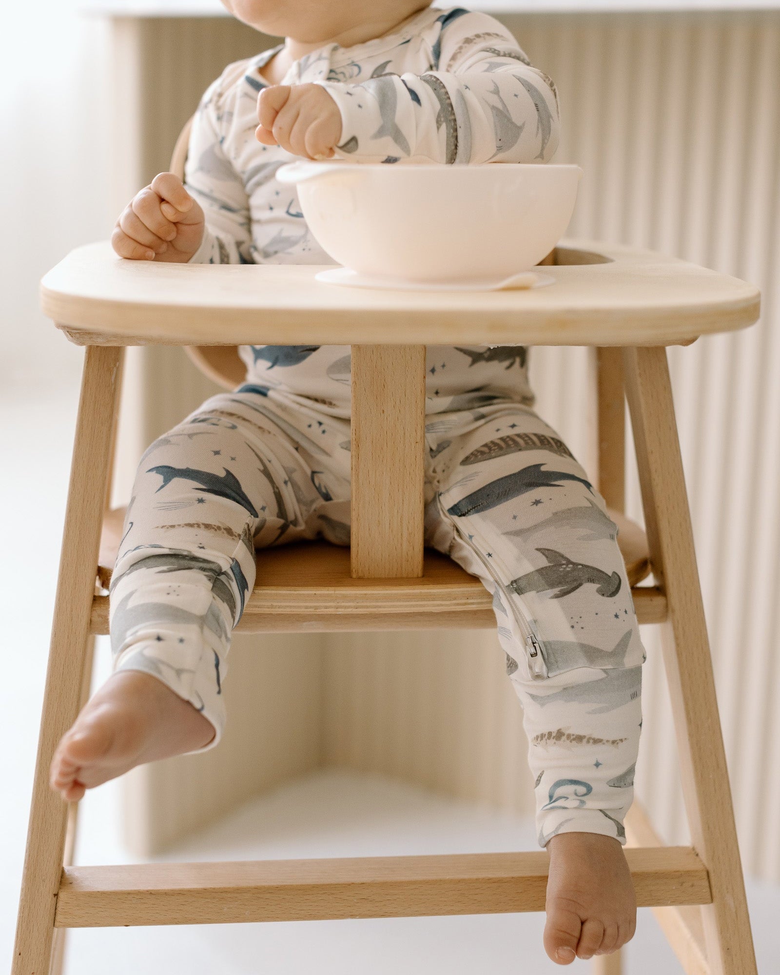 Unlike other bibs, its pouch sits below the highchair tray—perfect for spills