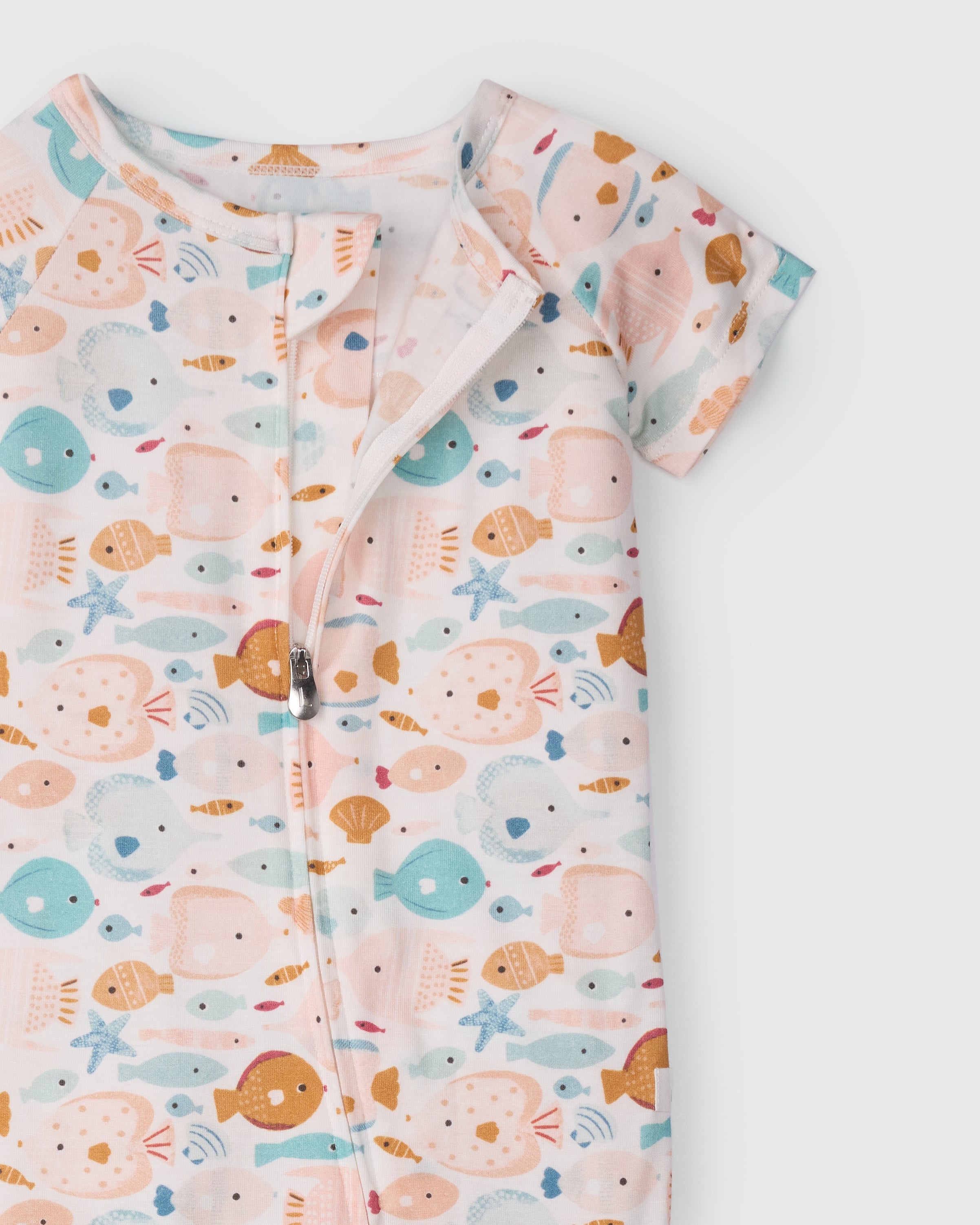 Our playful short-sleeve zipped romper is the perfect blend of comfort, convenience, and style for your little ones' warm weather adventure.