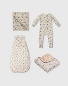 Sweet dreams are made easy with our Bumble Bees Print Newborn Sleep Bundle! This thoughtfully curated set includes a lightweight 0.5 TOG muslin sleep bag to keep baby cozy without overheating, paired with our ultra-soft TENCEL™ sleeper, crafted from sustainable fibers for gentle comfort on delicate skin. For swaddling, cuddling, or on-the-go comfort, the breathable muslin swaddle is a must-have, while the four-layer muslin quilt offers extra warmth and softness for naps and stroller rides.