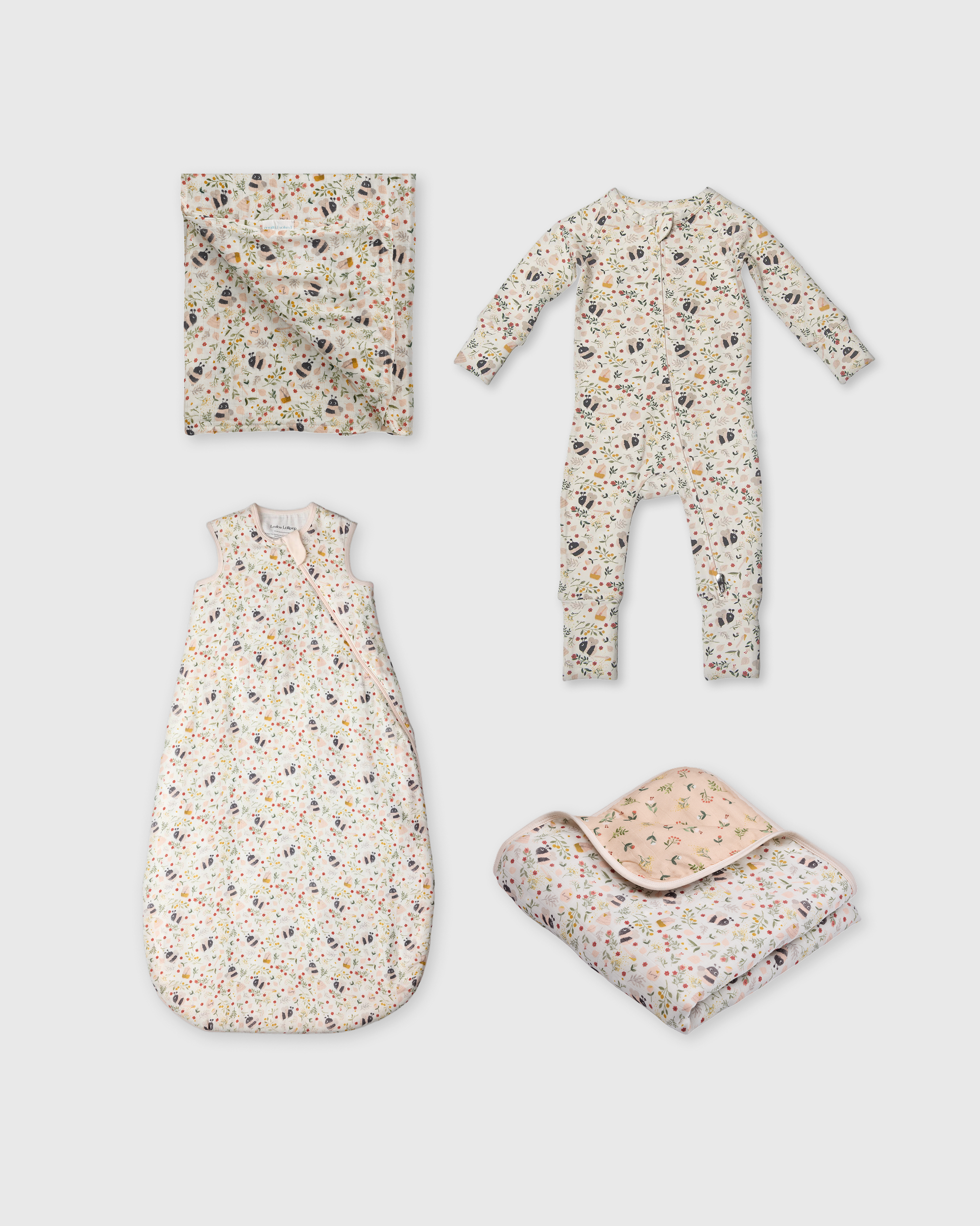 Designed for comfort, breathability, and timeless style, this bundle makes a beautiful gift for new parents or a perfect addition to your baby’s nursery. With its playful bumble bee print and natural fabrics, it’s the sweetest way to wrap your little one in safe, snuggly sleep.