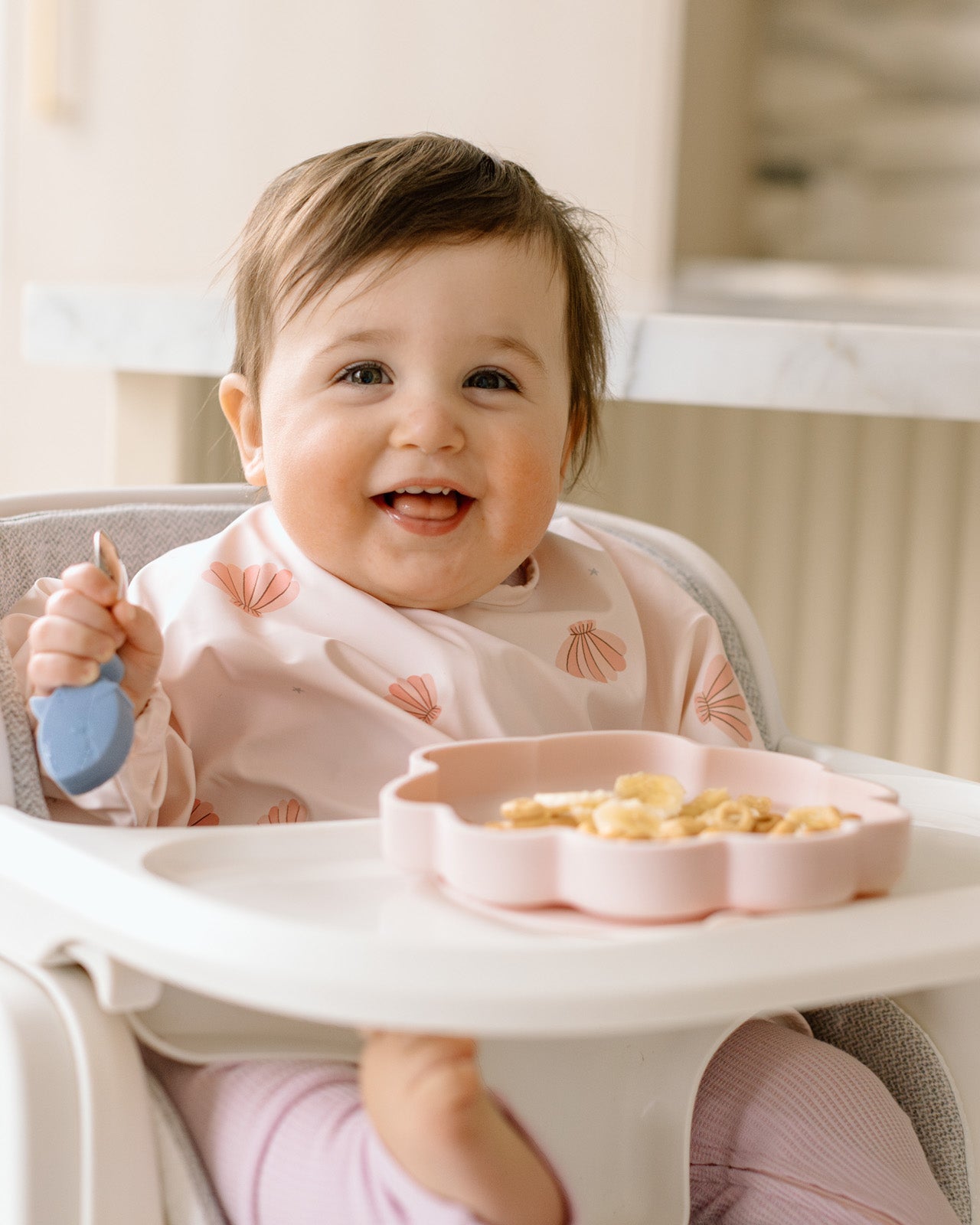 Make mealtime magical with the Seashells Learning & Feeding Bundle! This set includes a charming snack plate, a learning utensils set, and a printed silicone bib, all adorned with our whimsical Seashells design. Made from 100% food-grade silicone and sized perfectly for little hands, this bundle helps toddlers practice self-feeding while keeping meals tidy and fun. Durable, safe, and full of seaside charm, it turns every bite into a tiny adventure for your little ocean explorer!