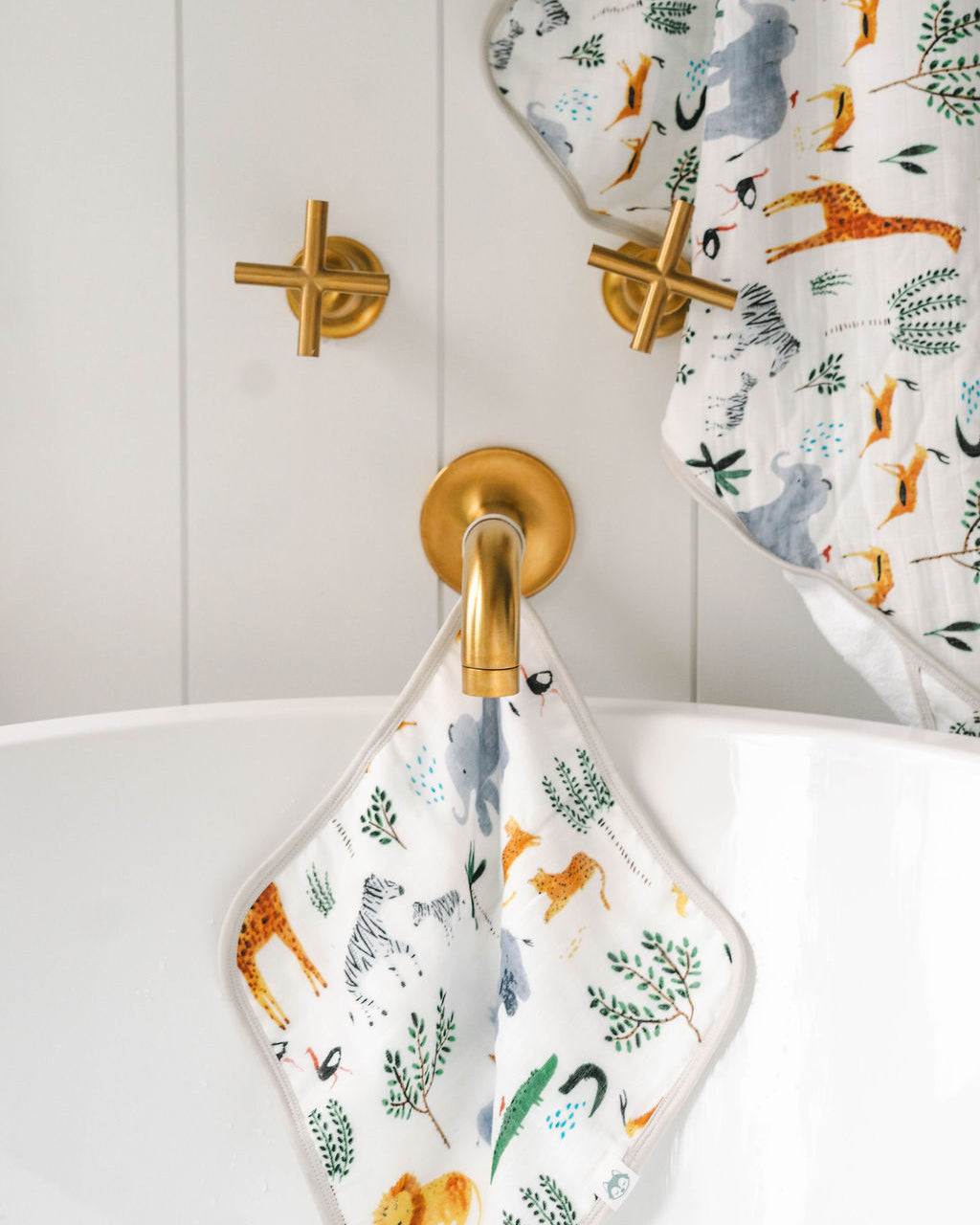Soft, snuggly, and ready for any mess. Our two-piece burp cloth set is made from buttery-soft muslin made from Tanboocel (a viscose from bamboo), and cotton, with a super absorbent terry cloth back, perfect for catching spit-up, dribbles, and surprise sneezes. Generously sized and dressed in our signature hand-drawn prints, they’re as adorable as they are practical. A diaper bag essential, for sure. Size: 22" x 11.5"