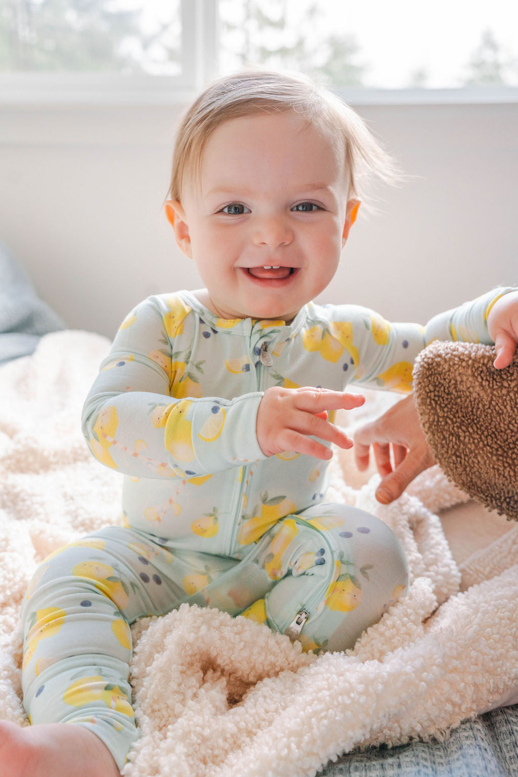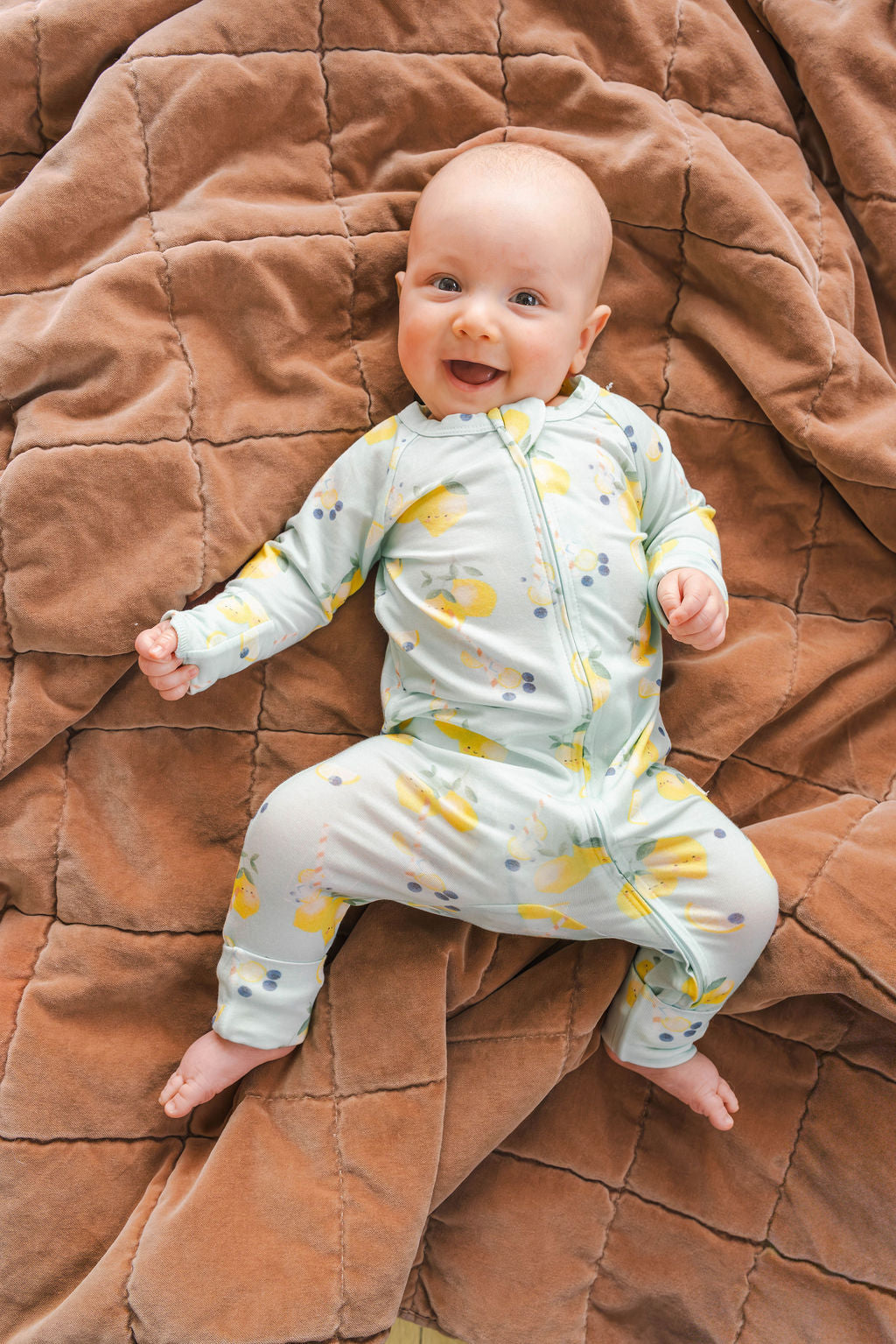 Softer against skin than cotton, breathable enough to prevent overheating — the Loulou Lollipop Sleeper in Lemon Squeezy helps your baby sleep longer and wake up less.