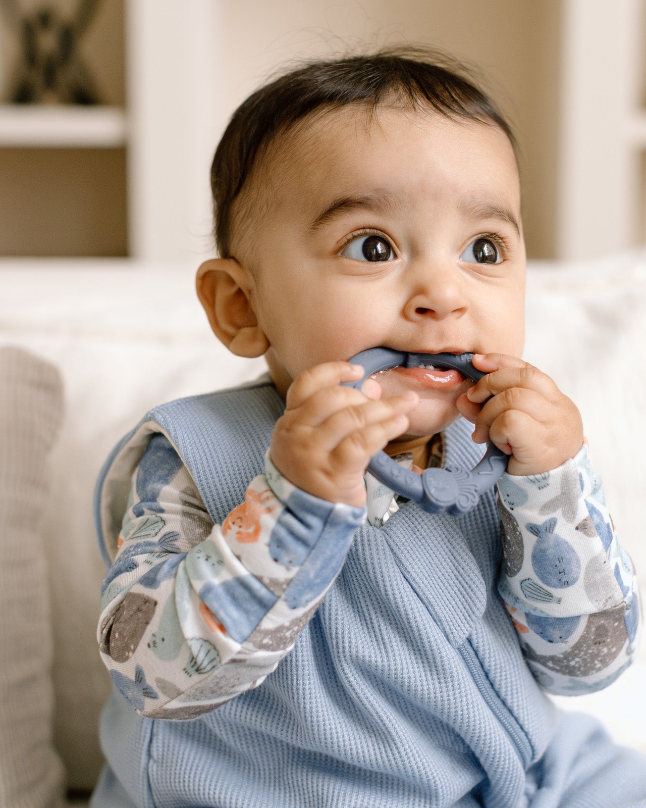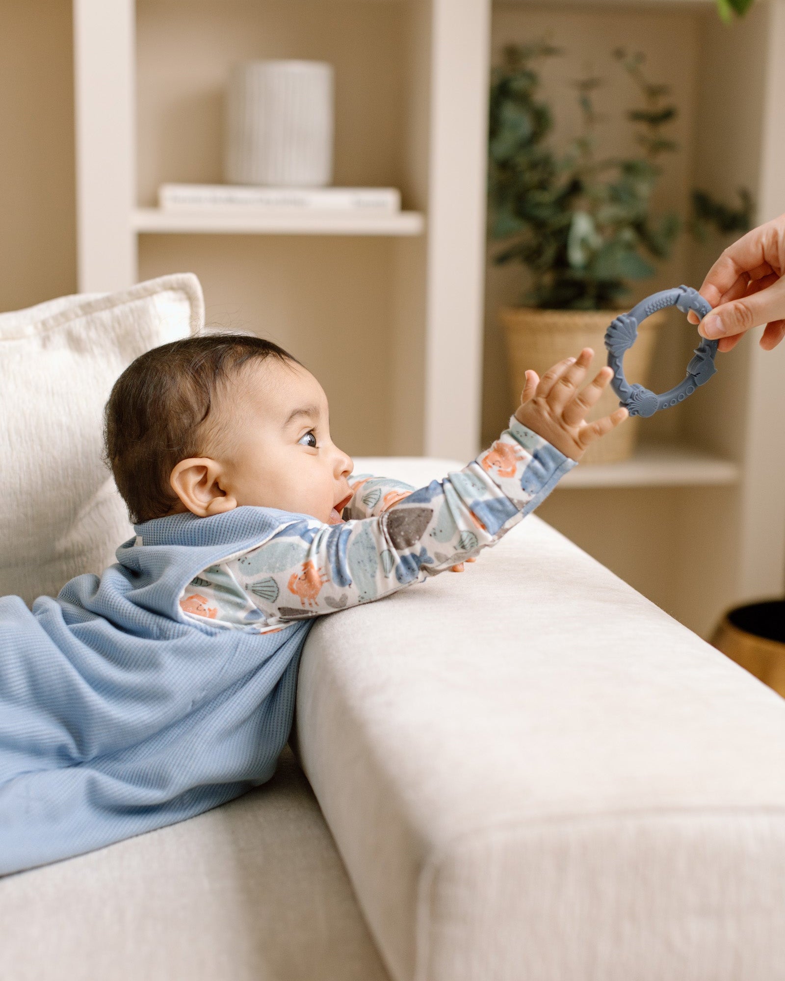 Fun, easy‑to‑hold silicone teethers to soothe sore gums. Support baby’s teething journey with our collection of soft silicone teethers designed for little hands to grasp and chew. Textured surfaces help gently massage irritated gums and provide soothing relief during teething stages.