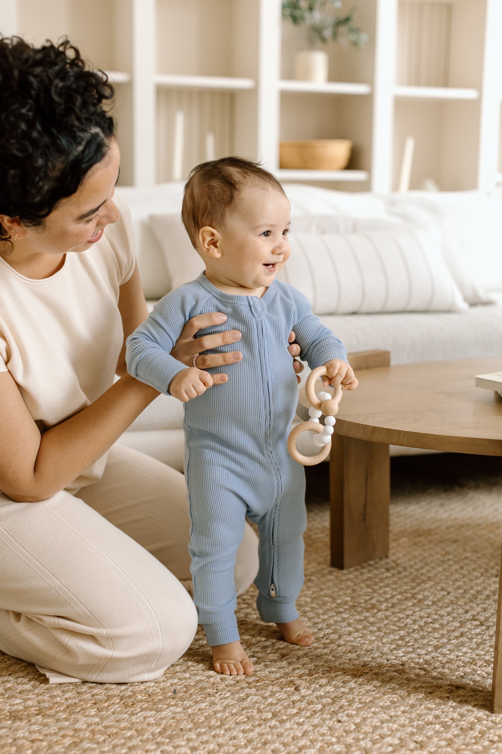 Softer against skin than cotton, breathable enough to prevent overheating — the Loulou Lollipop Sleeper in Blue Fog helps your baby sleep longer and wake up less.