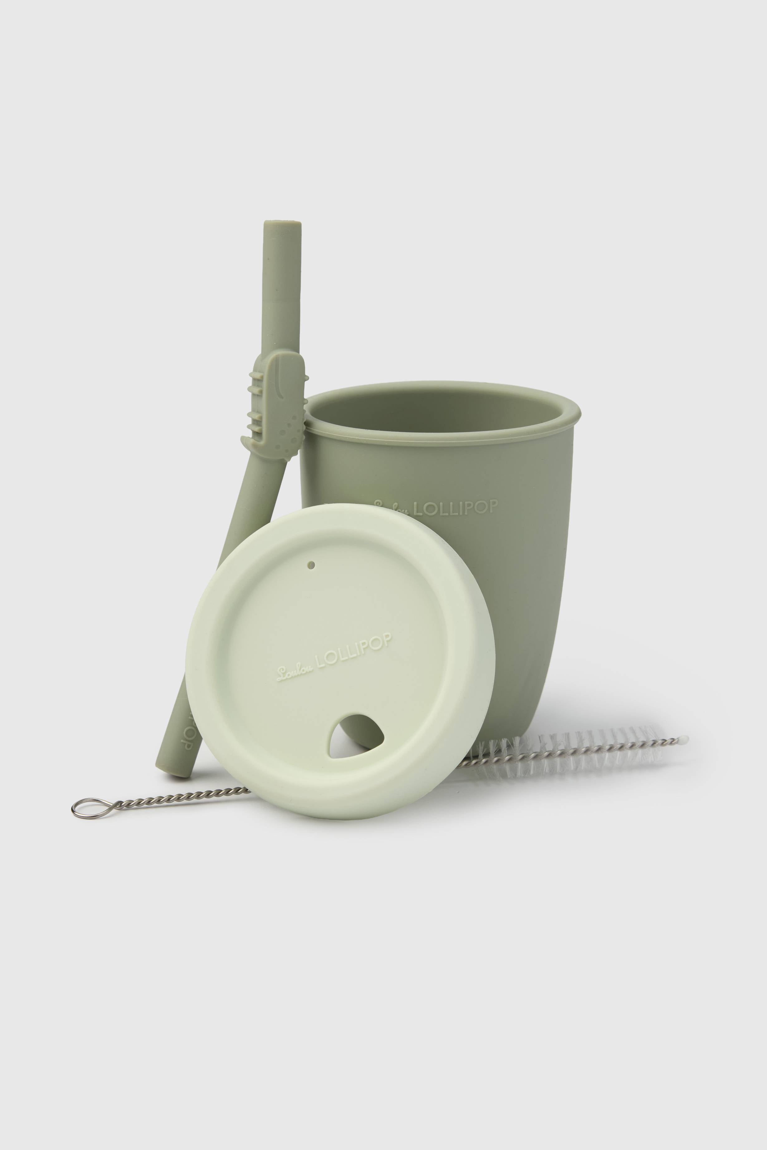 Our silicone cup with lid and straw makes transitioning from bottles to cups easy! Toddlers can use the cup with or without the straw. The soft silicone straw helps support baby-led weaning, and drinking from an open cup supports healthy oral and speech development. The cup measures 2.7 x 2.7 x 3.3 in, with a volume of 5.2 fl. oz / 150 ml. It weights 4.42 oz/ 125 g.