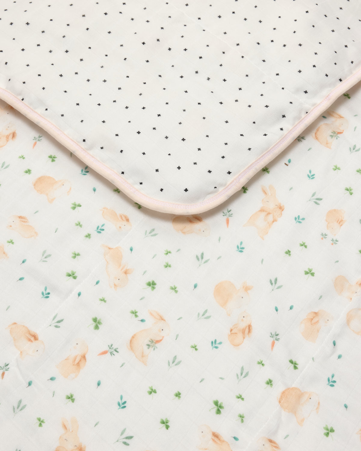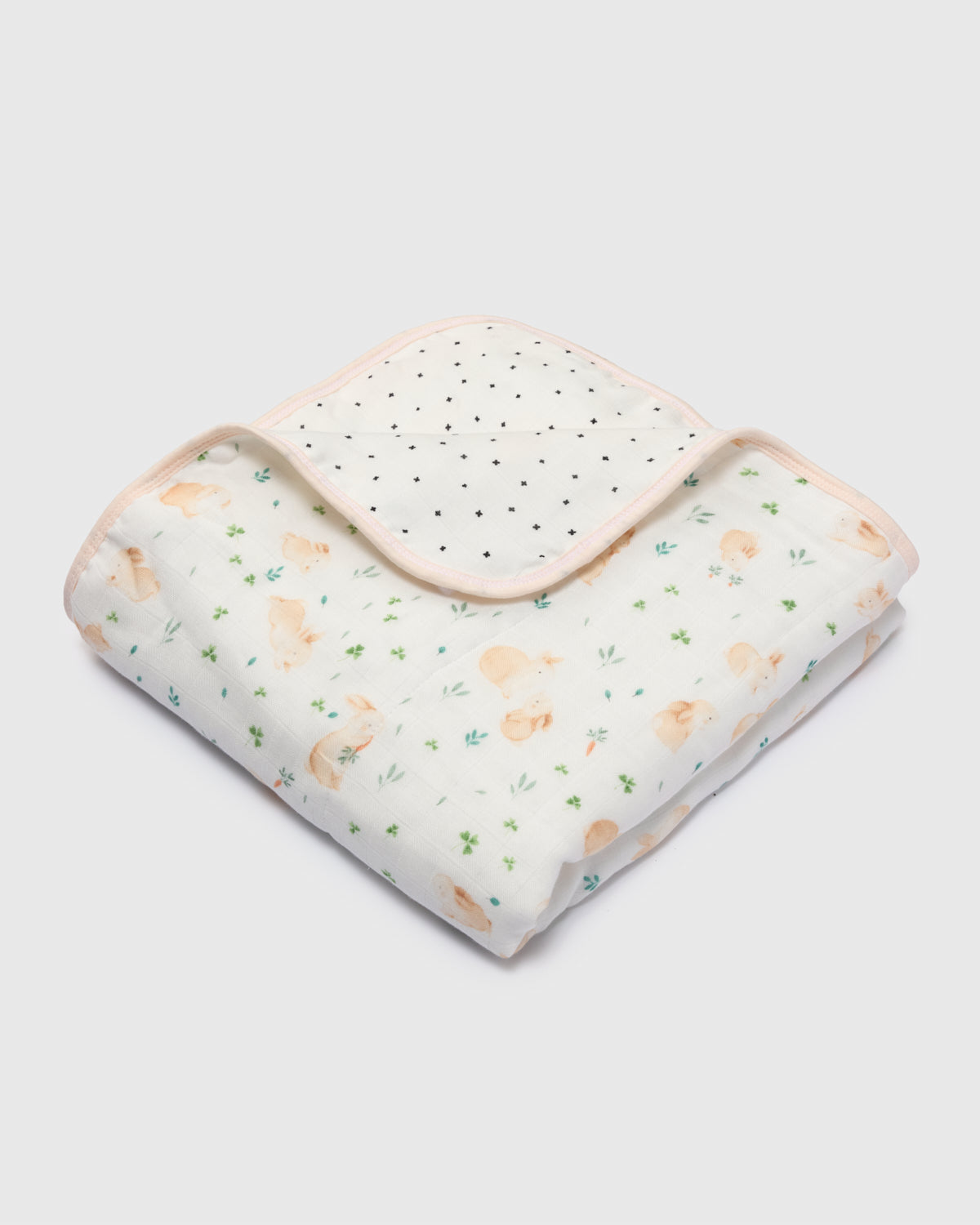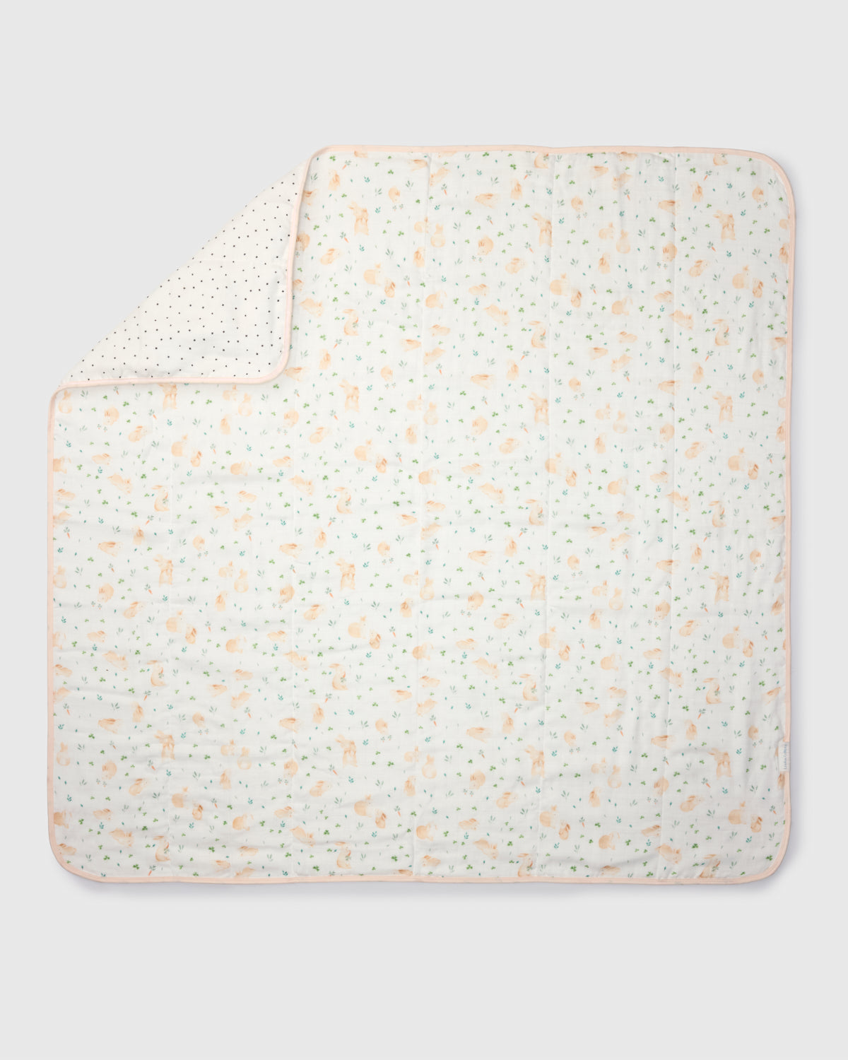 Our muslin quilts made from four layers of bamboo and cotton muslin fabric offer the perfect amount of breathable warmth and coziness to keep the baby comfortable and relaxed. This large reversible blanket is lightly quilted and features hand-drawn watercolor prints.