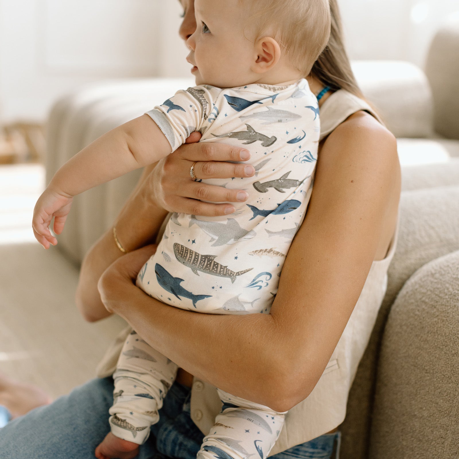 Lap shoulder neckline to make changing even the squirmiest baby quick and hassle-free