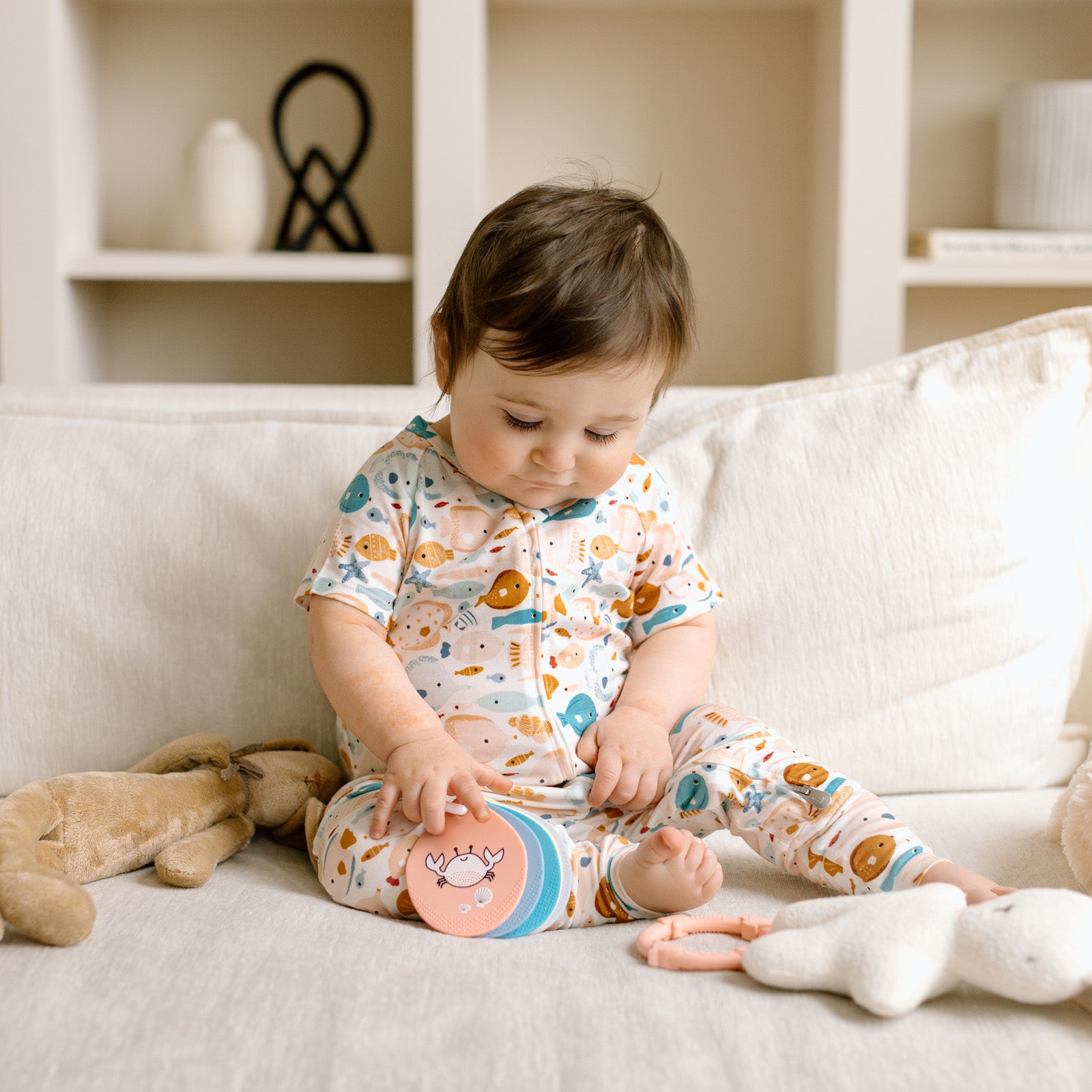 Our playful short-sleeve zipped romper is the perfect blend of comfort, convenience, and style for your little ones' warm weather adventure.