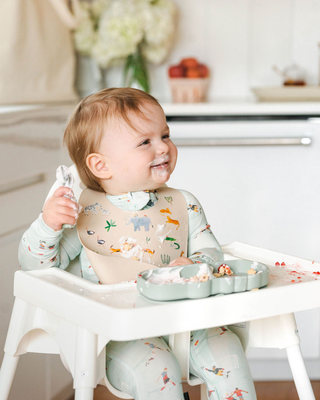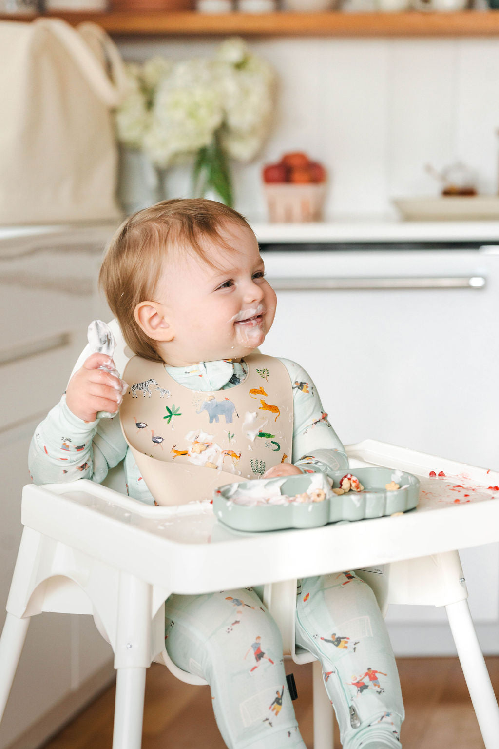 Made from TENCEL™ Lyocell with spandex for stretch, this footie pajama actively manages body heat and sweat to reduce temperature-related sleep interruptions, allowing for deeper sleep cycles. The fabric is naturally hypoallergenic and gentle on sensitive skin — ideal for babies prone to eczema.