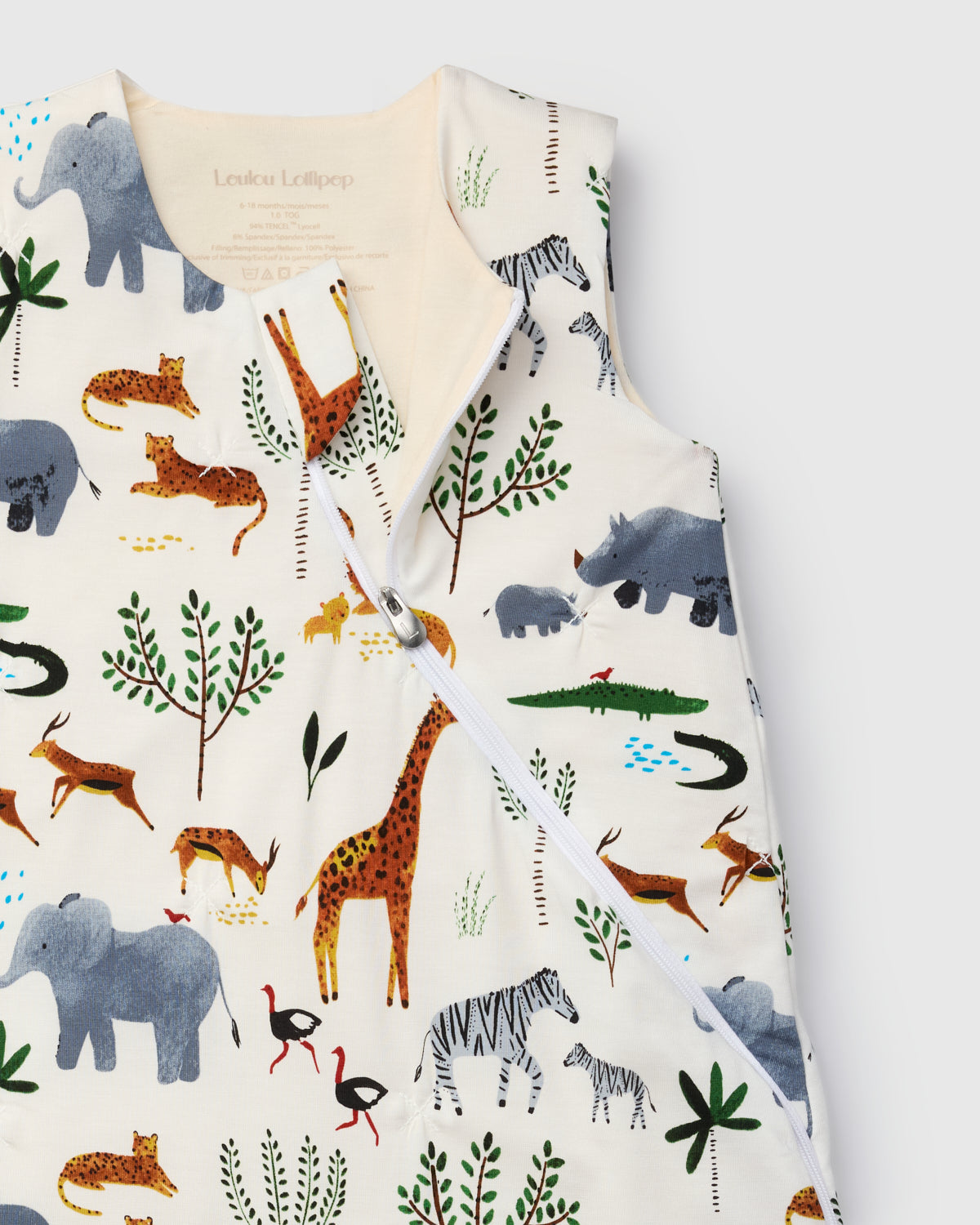 Softer against skin than cotton, breathable enough to prevent overheating — the Loulou Lollipop Sleeper in Safari Jungle helps your baby sleep longer and wake up less.
