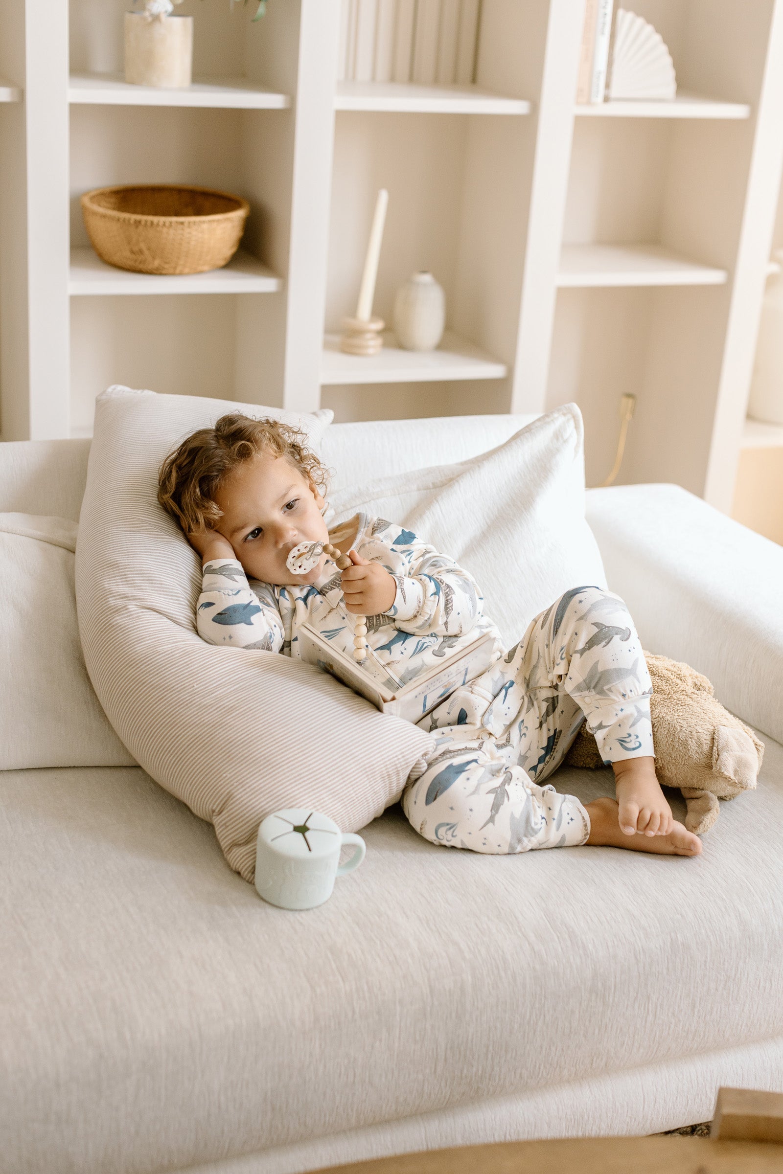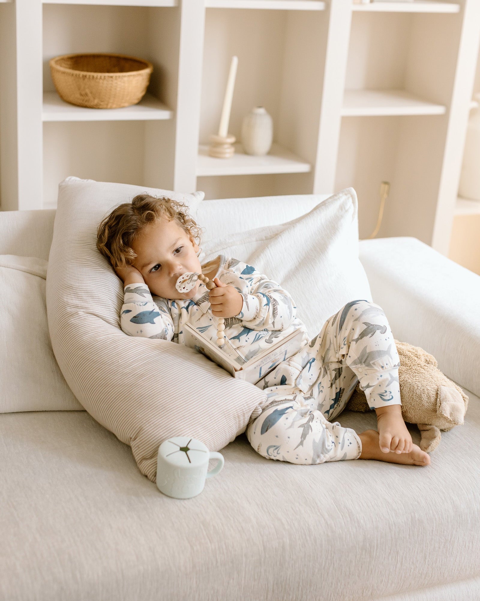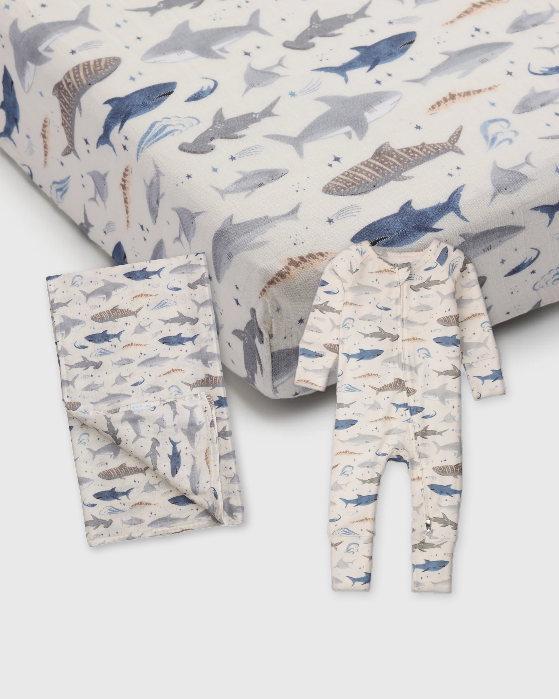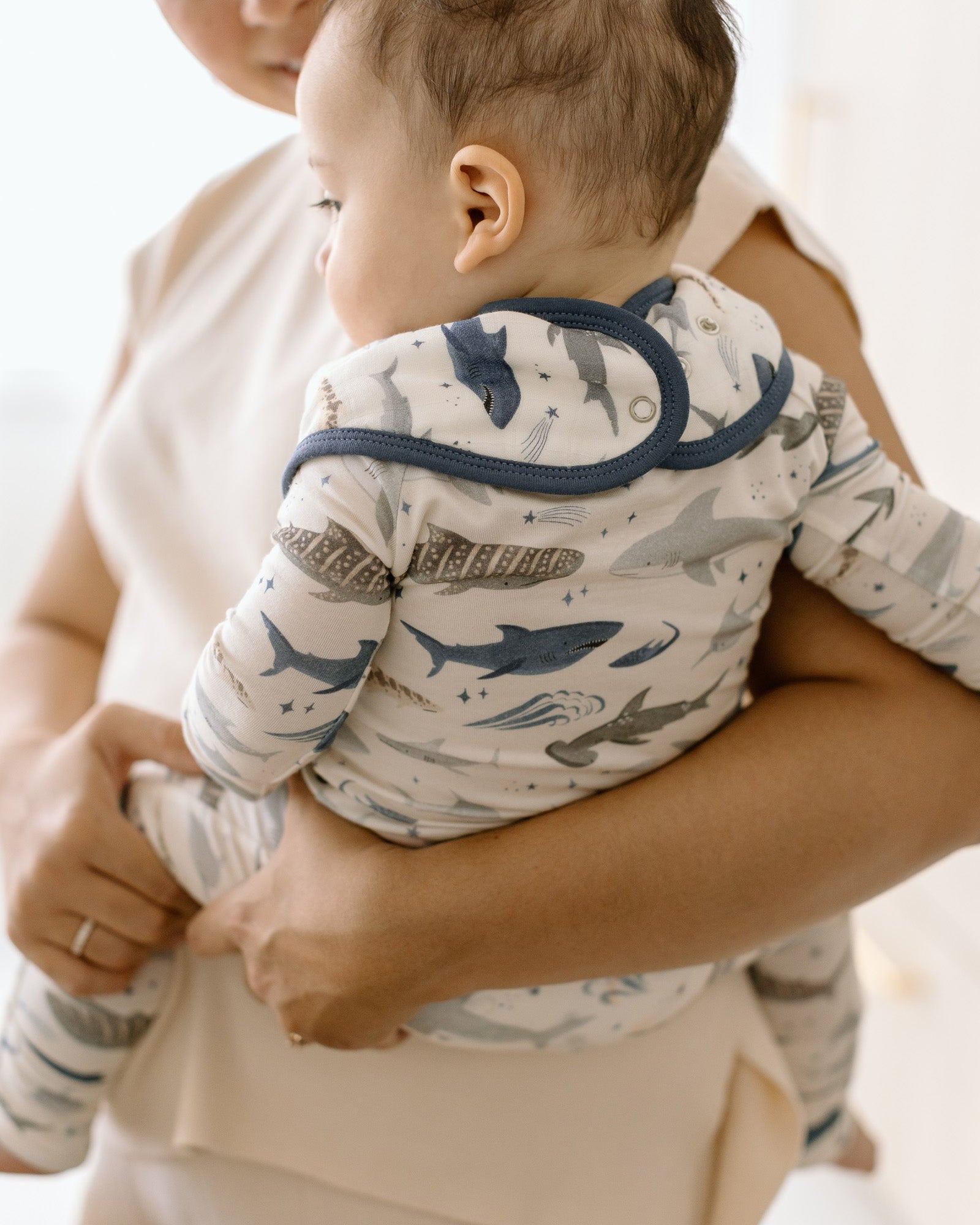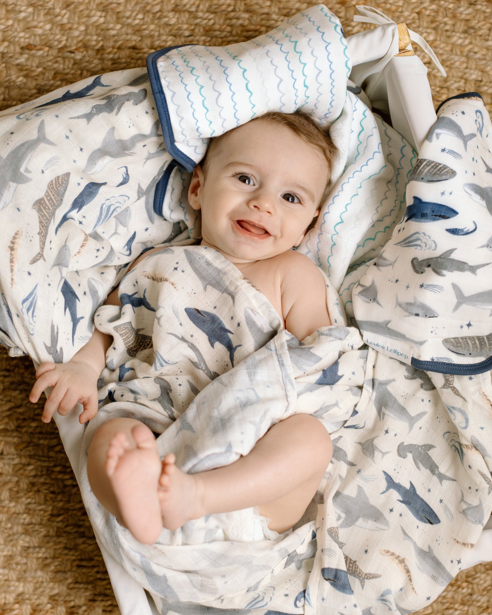 Clips to clothing or a pacifier clip so it's always within reach — the Loulou Lollipop Sarah Shark Teething Charm soothes sore gums with textured food-grade silicone.