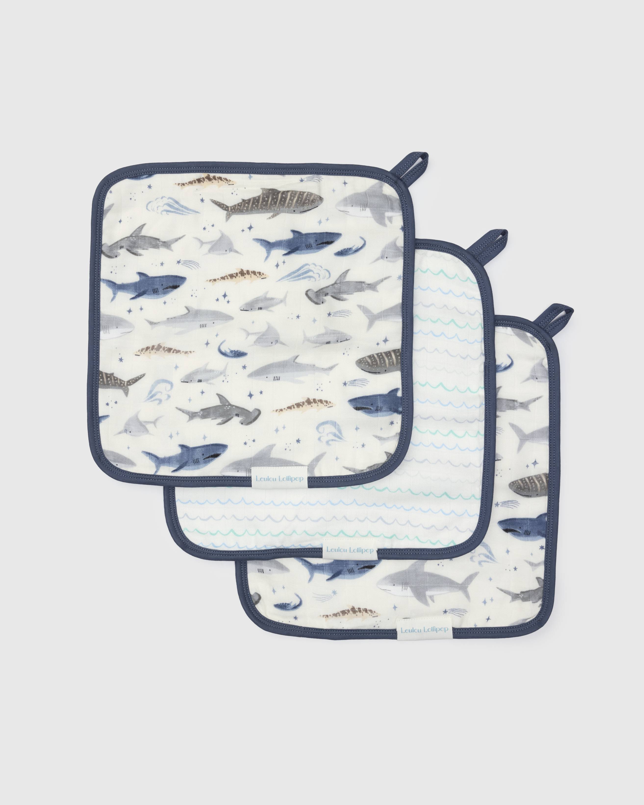 Washcloth Set - 3 Pack - Smiley Sharks