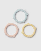 These lightweight teething rings are perfectly sized for little hands to grasp and explore! Made from safe and durable food-grade silicone, they provide endless opportunities for sensory play and discovery. Free of BPA, PVC, phthalates, lead, and cadmium. Comes in a pack of 3 for non-stop fun.